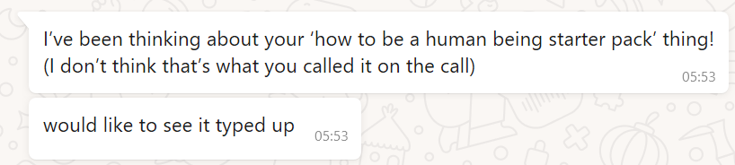 Before long, I found work—and carried the habits with me. I moved city and ran two events on my first week in Cambridge, MA. When I saw new people jump straight into hosting, I used to think each must be a qualitatively different type of person to me—something in their childhood-upbringing, perhaps, or a ‘Big 5’ quirk of personality difference. Now I have evidence that these habits can become natural, quickly—I just carried them over from my immediately antecedent environment. I guess this is meant to be the point of some exchange programs—enter a place where you can learn good habits from institutions that work well, them carry them seamlessly back with you.¹