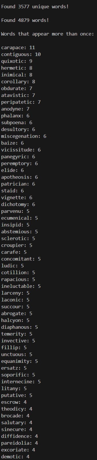 The issue is that I don’t remember all the words perfectly, so I’m sure there are some duplicates. But the document is over 100 pages long.